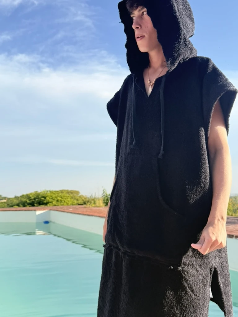Poncho cambiador de Toalla Negro // 10% OFF Transferencia o Efectivo.