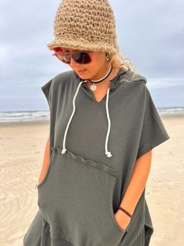 Hecho en algodón rústico o en toalla —en versiones largas y cortas—, es esa prenda que te acompaña después del agua, en la siesta o cuando el cuerpo sólo quiere respirar.